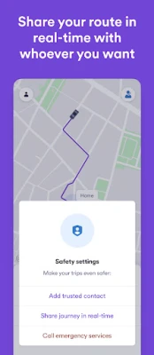 🚘 The safety of your trips is our priority. All trips are geolocated and can be shared immediately with any family member or friend. They will be able to see which taxi or car you are in, which driver you are with, and even where you are in your trip.