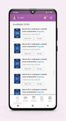 Our app helps nurses, carers, and other healthcare workers to create accounts, add their information and upload their certificates and documents. Care homes and hospitals can post shifts through the app and the shift notifications can be sent to the allocated staff so that they can view and accept the shifts. The staff can also clock in /clock out and upload timesheets or signatures as proof of their work.