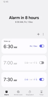 This feature allows you to assign dates to alarms, and repeat alarms can skip one day and be turned on again. The Snooze feature allows you to create the same effect as setting multiple alarms.