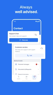• Sending messages to the bank and chatting with Mira, Erstebank's digital assistant
