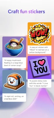 Unleash your creativity—visually create, design, and edit just about anything you can imagine with AI. Use the power of generative AI to create eye-catching images with your words, craft next-level designs that pop like personalized birthday cards, holiday cards, and wallpapers for your phone, and even use AI to edit photos like an expert - erasing unwanted objects from photos. Create what you want, when and where you need it.