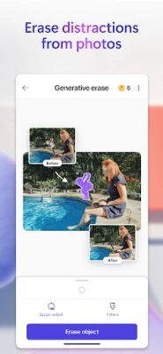 Generative erase: Erase unwanted distractions to make objects you don’t want in your image disappear.