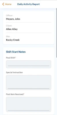 - Guard Tour Tracking system that utilizes NFC Tags or QR Codes. Includes a real-time dashboard that displays guard activity. - Ability to submit Incident Reports, Daily Activity Reports, Field Inspections, Maintenance Requests, Pass On Logs, Parking Violations, Temperature Logs, Truck Logs, and Visitor Logs. - Ability to view the work Schedule, Pass On Logs, Incident Checklists, Post Orders, and Policy Manuals. - Time Clock reporting with the Clock In and Clock Out features.