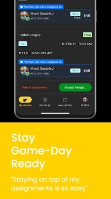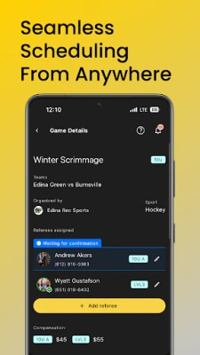 Update Assignments Anywhere: Adjust referee assignments quickly and easily from the app, no matter where you are.