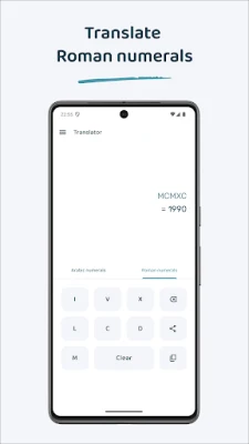 Roman Numeral Translator & Creator: Effortlessly convert Arabic numbers to Roman numerals and vice versa. Create your own Roman numerals intuitively using our specially customized keyboard. Perfect for homework, history enthusiasts, or quick conversions on the go.