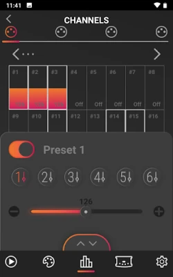 Compatible with the versions of Chromateq free DMX lighting software and Ethernet-enabled stand alone devices such as the CQSA-E, DIN-E or CLUB-E, our new lighting control remote APP comes with a new look, a slick dark skin and an updated graphic interface and experience user.