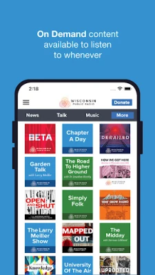 The Wisconsin Public Radio App allows you to listen to WPR’s Ideas Network, News and Classical Network, and 24 Classical Network live, pause and rewind the live audio, and view the program schedule for all the WPR streams at once! You can explore On Demand content, search for programs, bookmark a program for later, and wake up to WPR with the alarm clock!